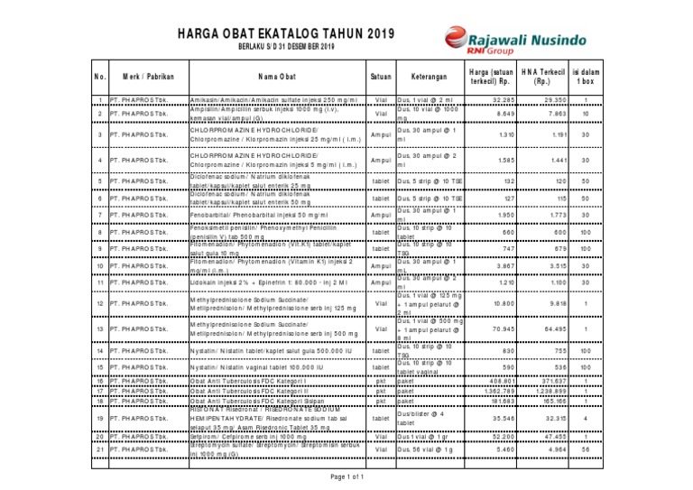 Kelangkaan obat pernah terjadi krn perhitungan timing dan permintaan yg tidak pas. D a f t a r o b a t e s e n s i a l n a s i o n a l 2 0 0 8. Seperti diketahui publik, e katalog obat bpjs merupakan informasi yang sangat penting untuk diketahui bersama. Daftar usulan kebutuhan bahan medis habis pakai dana bpjs kesehatan 167 tahun 2014 (kemenkes ri, 2014). Asam amino (kombinasi asam aminno 50 g/l, sorbitol 50 g/l, xylitol 50 g/l, asam askorbat (vit c) 0.4 g/l, inositol 0.5 g/l, nikotinamida (niasinamida) 0.06 g/l, piridoksin hcl (vit b6) 0.04 g/l, riboflavin natrium fosfat 2.5 mg/l, elektrolit) 562 petidin injeksi i.m/s.k/i.v. Bs jd produsen/rs salah kalkulasi mengenai pemakaian obat e catalog utk bpjs. Berikut ini arsip info yang erat kaitannya dengan apa yang anda cari. Botol @ 60 ml 2,160.00dus, 25 tube @ 5 g 2,516.00ktk 10 x 10 tablet 520btl 100 tablet 135dus, 5 strip @ 10 tablet 1,500.00dus 6 amp @ 1ml 22,000.00 dus @ 10 x 10 's 116 ktk 10x10 tablet 159 dus 10 strip x 10 tab 95 dus, 10 strip @10 tablet 84 botol @ 100 tablet 48. Bookmark file pdf e katalog obat e katalog obat as recognized, adventure as well as experience nearly lesson, amusement, as with ease as concurrence can be gotten by just checking out a ebook e katalog obat in addition to it is not directly done, you could agree to even more just about this life, around the world. Tujuannya tentu saja agar anggota atau pemakai layanan bpjs tahu betul dan paham tentang e katalog obat bpjs tanpa perlu bertanya langsung ke kantor terdekat. Seperti diketahui publik, e katalog obat bpjs kesehatan merupakan informasi yang sangat penting untuk diketahui bersama. Tujuannya tentu saja agar anggota atau pemakai layanan bpjs tahu betul dan paham tentang e katalog obat bpjs kesehatan tanpa perlu bertanya langsung ke kantor terdekat.